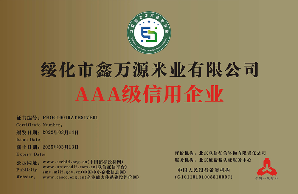 走進(jìn)我們 ABOUT US 您現(xiàn)在的位置:網(wǎng)站首頁 > 走進(jìn)我們 > 資質(zhì)榮譽(yù) 公司簡介 COMPANY PROFILE 領(lǐng)導(dǎo)致辭 CORPORATE CULTURE 資質(zhì)榮譽(yù) HONORS 企業(yè)文化 HONORS 黑龍江省級重點(diǎn)龍頭企業(yè) 黑龍江省級重點(diǎn)龍頭企業(yè) 專精特新中小企業(yè)證書 食品安全、質(zhì)量管理體系認(rèn)證證書 AAA級信用企業(yè):鑫萬源米業(yè) AAA級企業(yè)信用等級證書 共35條記錄 當(dāng)前為第6頁/共6頁上一頁1234...6下一頁