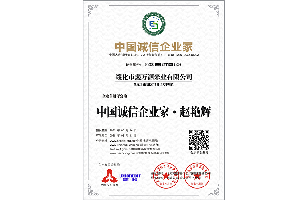 走進(jìn)我們 ABOUT US 您現(xiàn)在的位置:網(wǎng)站首頁 > 走進(jìn)我們 > 資質(zhì)榮譽(yù) 公司簡(jiǎn)介 COMPANY PROFILE 領(lǐng)導(dǎo)致辭 CORPORATE CULTURE 資質(zhì)榮譽(yù) HONORS 企業(yè)文化 HONORS 中國誠信企業(yè)家:趙艷輝 黑龍江省示范糧油示范加工企業(yè) 鑫萬源米業(yè)兩化融合管理體系評(píng)定證書 綏化市大學(xué)生實(shí)習(xí)實(shí)訓(xùn)基地 農(nóng)業(yè)產(chǎn)業(yè)化市級(jí)重點(diǎn)龍頭企業(yè) “鄉(xiāng)村振興,扶危助困”活動(dòng)榮譽(yù)證書 共35條記錄 當(dāng)前為第6頁/共6頁上一頁123456下一頁